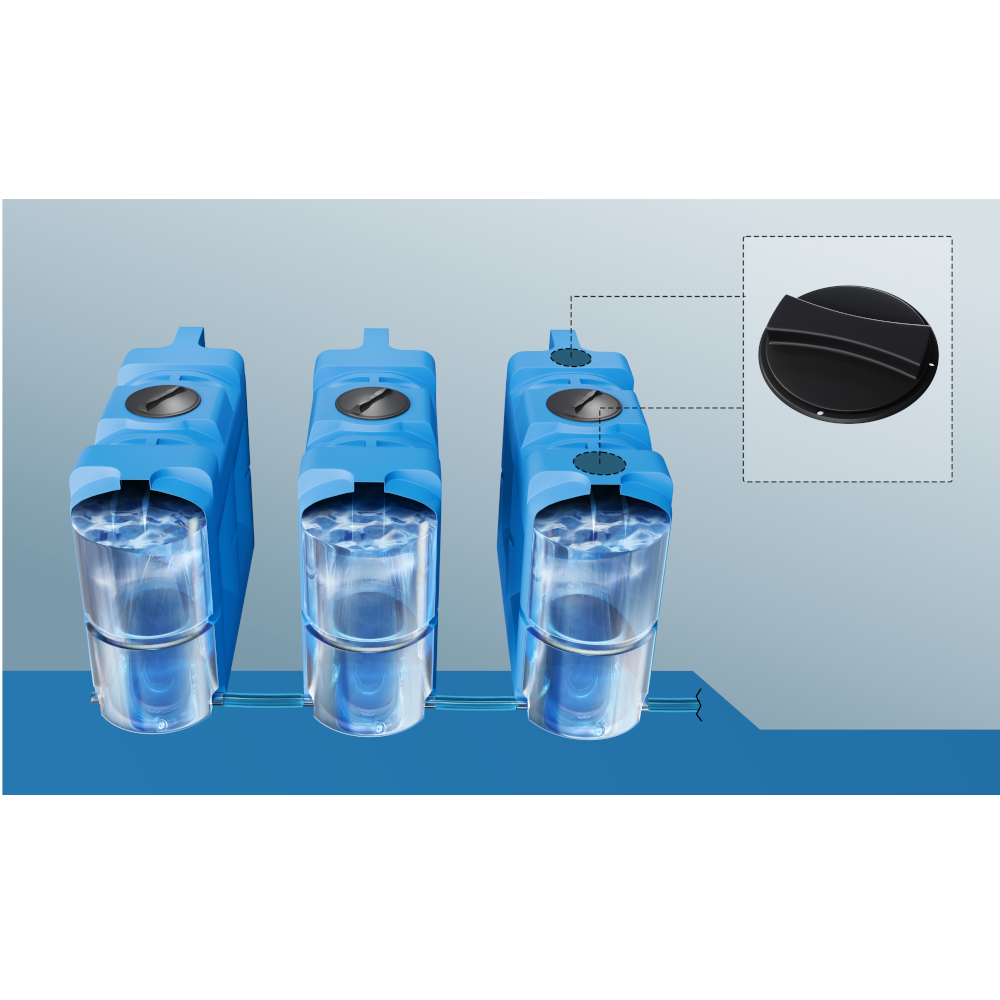 Disse smalle tanke passer gennem en standard døråbning. De fylder lidt i et rum og er nemme at transportere. Hullet i midten gør det nemt at fastgøre tanken og fungerer også som en væskebryder, således at vandets bevægelse i tanken mindskes.