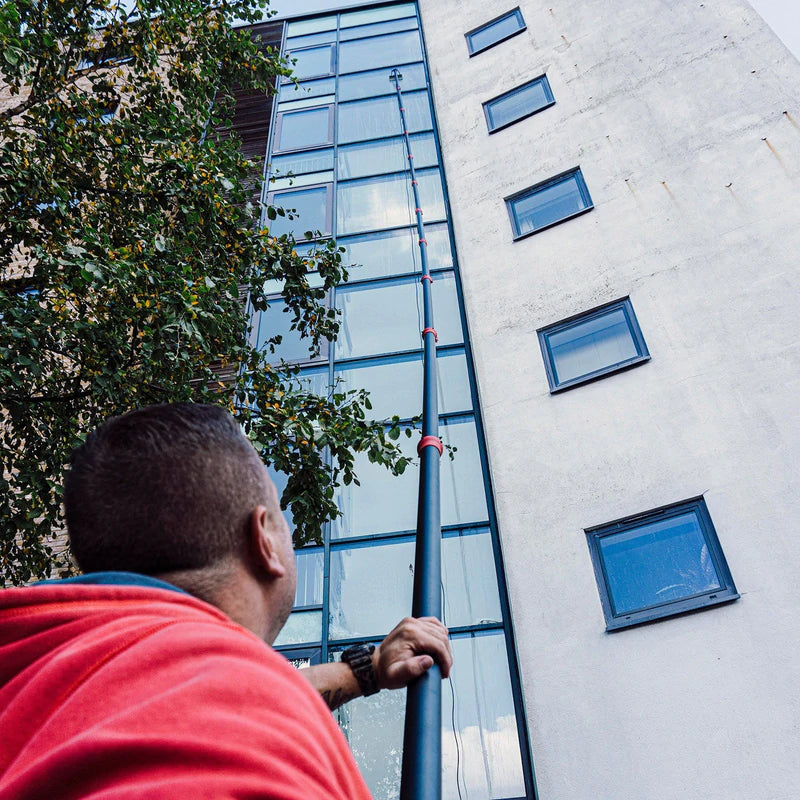 - Dette multifunktionelle system erstatter de mange stænger og tilbehør, der er nødvendige for sikker rengøring i højden, med kun ét fleksibelt rengøringssystem