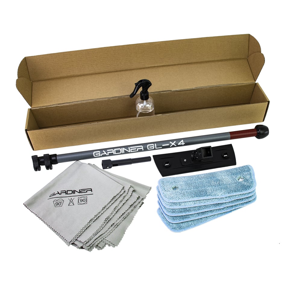 Gardiner indendørs rengøringssæt med 25cm rengørings- moppeholder er en komplet løsning til indvendig rengøring af vinduer, spejle, fliser, rustfrit stål, hvide tavler og andre højglansoverflader, inklusive gulve.