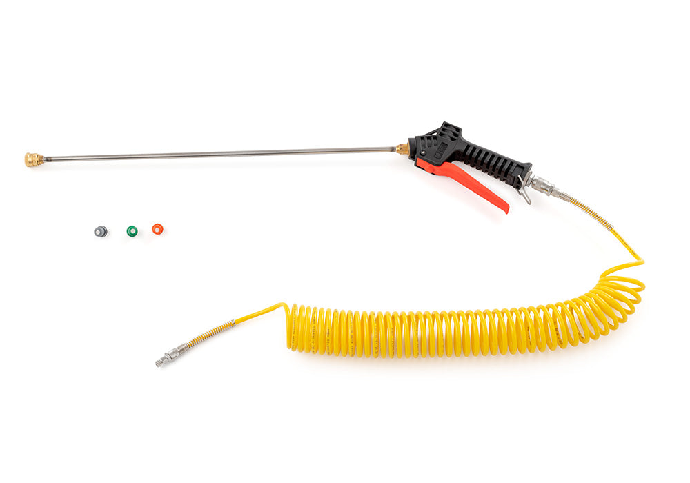 Ghibli SaniPro 20.12AP desinficeringsmaskinen leveres med en 50cm lang spraylanse for enden af en 7,5m spiralslange, som gør det nemt at nå høje eller svært tilgængelige steder.