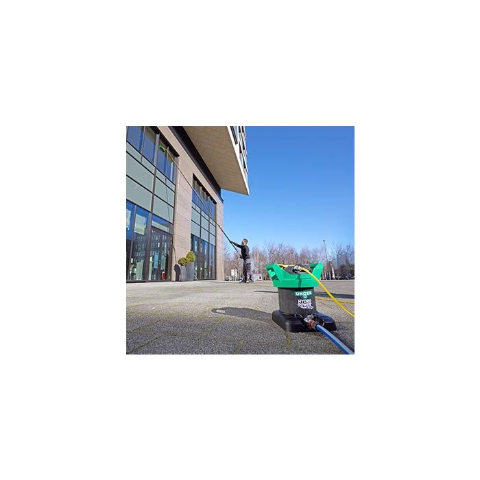 Komplet sæt til at producere rent vand og vask af glasflader med teleskopstang og vandbørste.