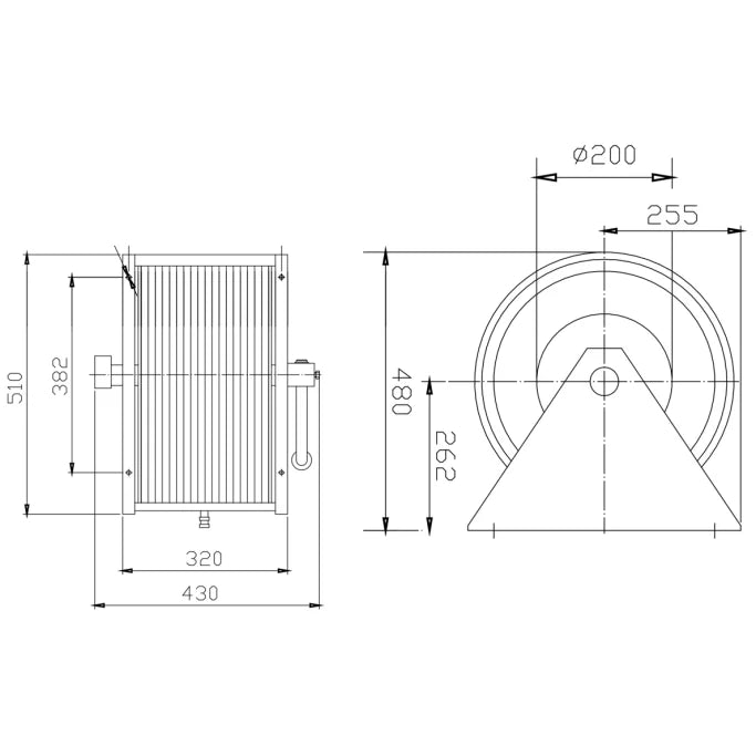 Solidt slangehjul. Kan monteres med slange op til 1/2" x 45m eller 3/8" x 90m slange