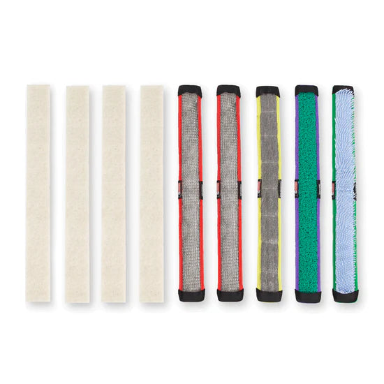 SOLAR ROCKER kommer med 5 typer "SCRUB PADS" for at give dig et komplet udvalg af værktøjer. SCRUBS 9 stk. : 4 x HVID NON-SCRATCH PAD, 1 x SILICONE, 1 GRØN GUMMI, 2 x RUSTFRI MESH, 1 x RUSTFRI ULD.